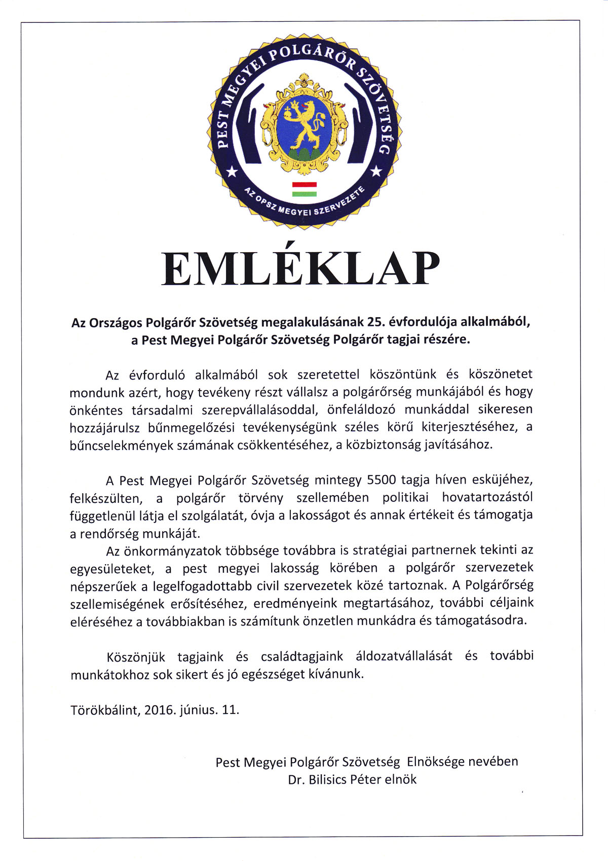 Polgárőrünk a sikeres intézkedéseit a Pátyi Polgárőr Egyesület elhunyt tagja, Juhász József emlékének ajánlotta fel.